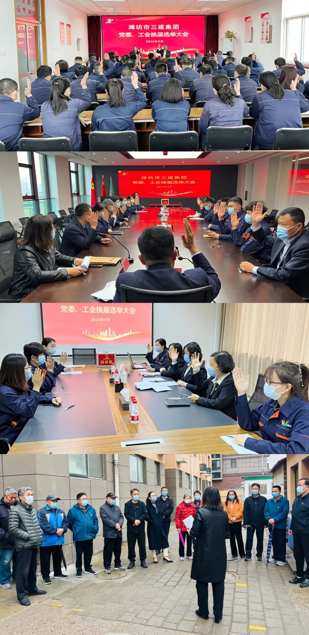 4月6日,集團分別召開了全體黨員、工會會員代表大會,圓滿完成黨委、工會換屆選舉工作,分別選舉產(chǎn)生了新一屆黨的委員會和工會委員會。 按照相關(guān)規(guī)定,會議采用無記名投票方式,選舉產(chǎn)生了新一屆黨委委員和工會委員,選舉王海明、孫祎昉、潘光輝、王波明、肖良瑞5名同志為中共濰坊市三建集團新一屆委員會委員;選舉孫祎昉、劉保英、唐桂芝、王璠璠、孫曉慶、孫曉靜、邵展展7名同志為濰坊市三建集團第十二屆工會委員會委員。在新一屆黨委委員會第一次全體會議上,選舉王海明同志為黨委書記、孫祎昉同志為副書記;在新一屆紀委委員會第一次全體會議上,選舉肖良瑞同志為紀委書記;在第十二屆工會委員會第一次全體會議上,選舉孫祎昉同志為工會主席。 新一屆黨委委員和工會委員將持續(xù)秉承集團黨委“夯實黨建根基,筑就三百偉業(yè)”黨建工作理念,把牢政治方向,忠誠履職盡責,助推集團實現(xiàn)更高質(zhì)量發(fā)展。